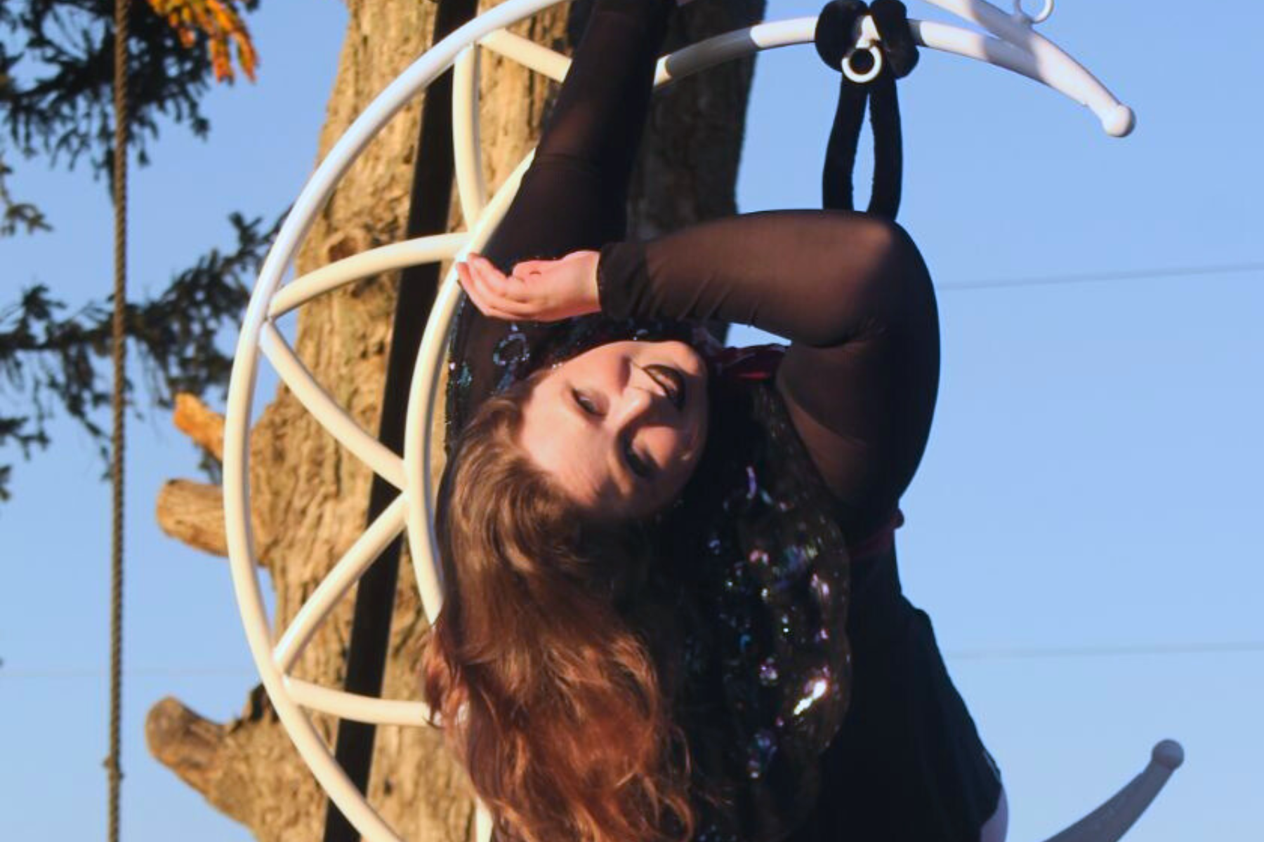Shannon’s earliest memories are of being upside-down. She enjoyed movement based arts such as gymnastics and cheer, climbing, and jumping as a child which grew into a strong desire for novel experiences & dreams of running away with the circus in adulthood. This ultimately led her to pursue aerial arts & movement. Shannon’s aerial journey started with Lyra, and has expanded to encompass a wide variety of apparatuses & movement arts. Along with aerial, Shannon enjoys movement modalities such as belly dance, burlesque, and Liquid Motion®️.